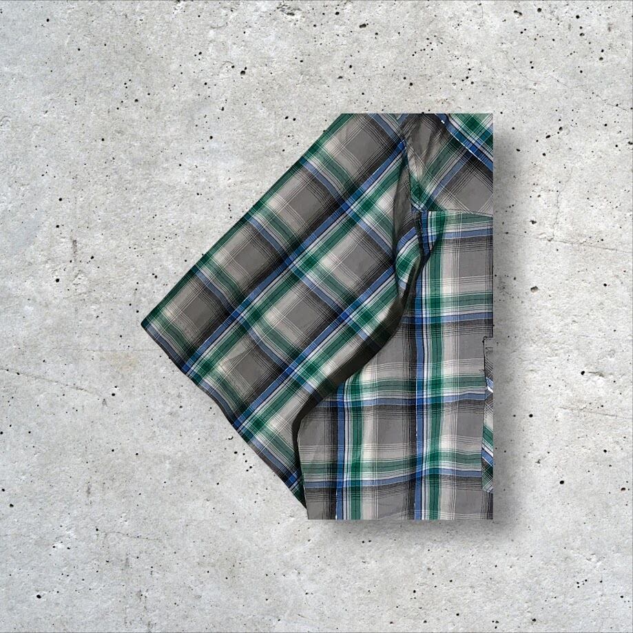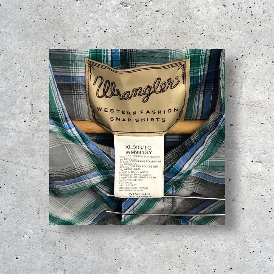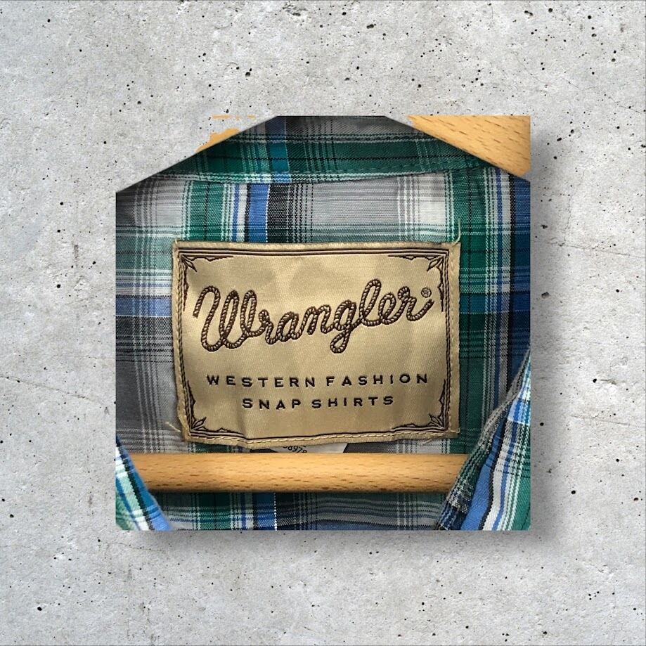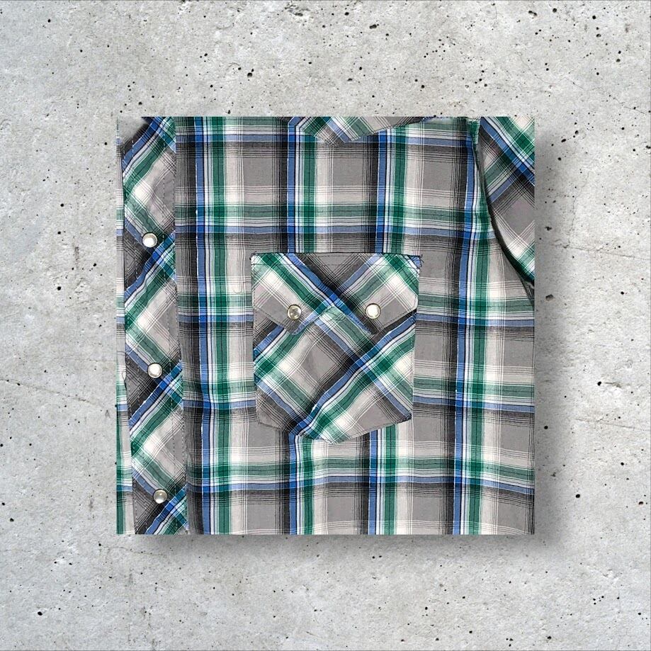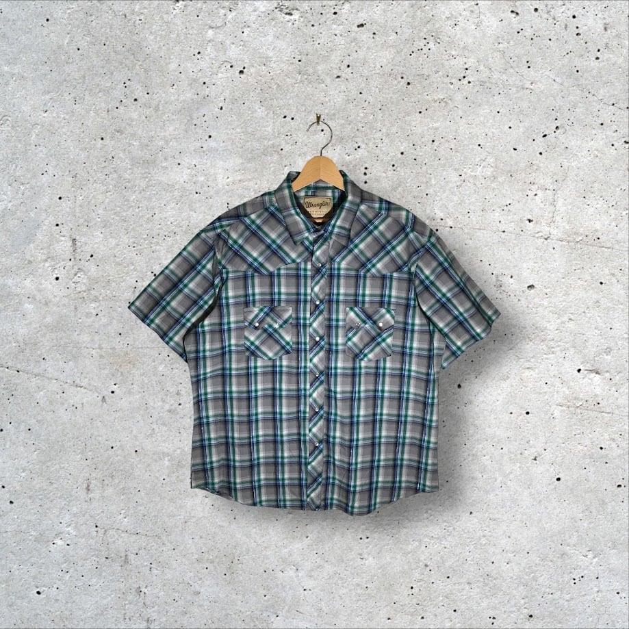 Wrangler ラングラー ウエスタンシャツ チェック柄 半袖 シャツ スナップボタン オーバーサイズ ビッグサイズ Bangladesh製 XLサイズ グレー グリーン ブルー
