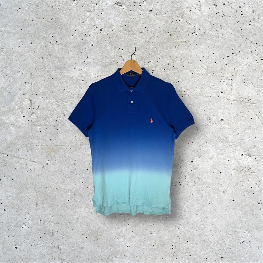 商品名:POLO RALPH LAUREN ポロラルフローレン グラデーションカラー ポニー刺繡 半袖 ポロシャツ ワンポイント刺繡 CHINA製 Mサイズ ブルー ライトブルー