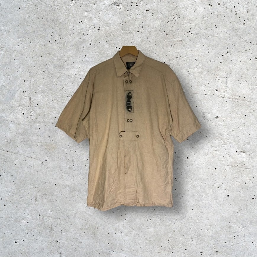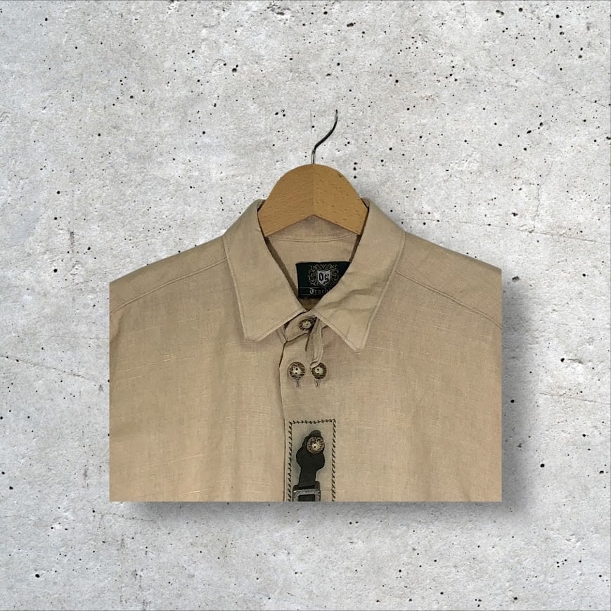 商品名:OS Tranchten チロルシャツ チロリアン ユーロ古着 半袖 シャツ フロント刺繍 オーバーサイズ ビッグシルエット ベージュ