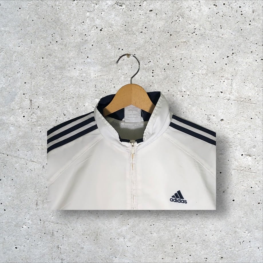 商品名:adidas アディダス ナイロンジャケット 長袖 ライトアウター スリーライン メッシュライナー カンボジア製 Mサイズ ホワイト
