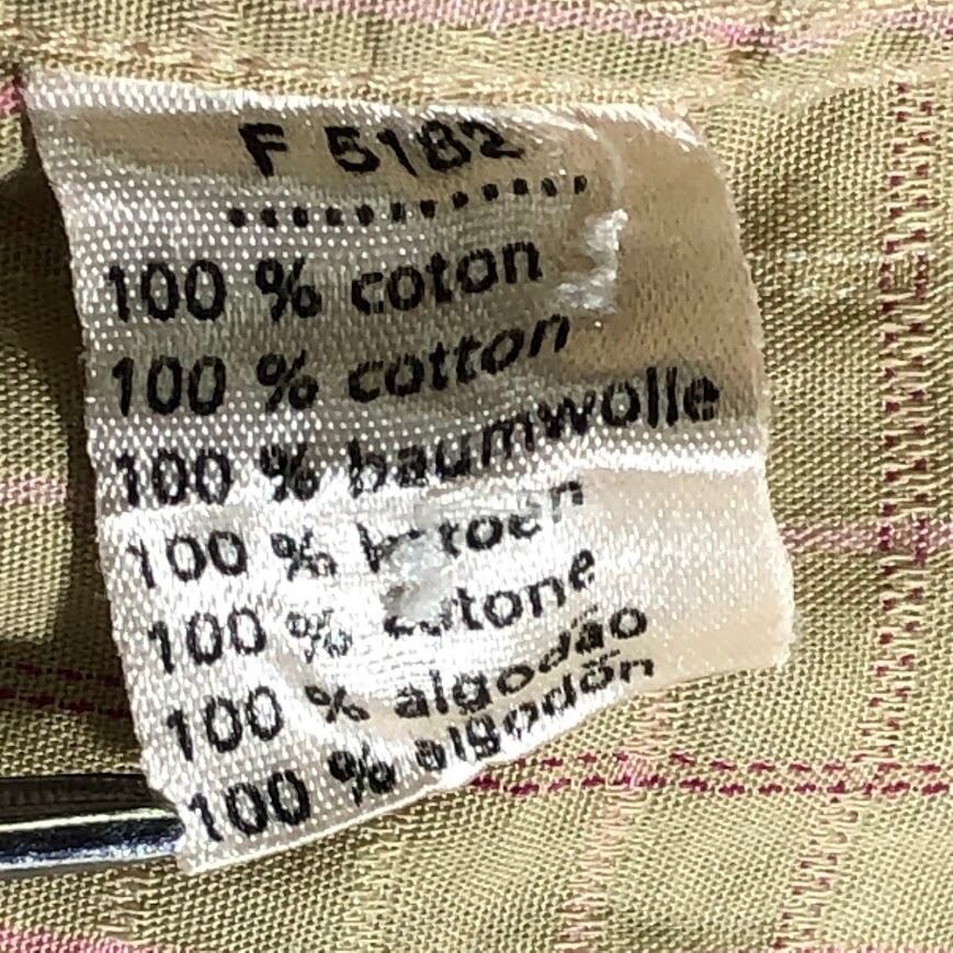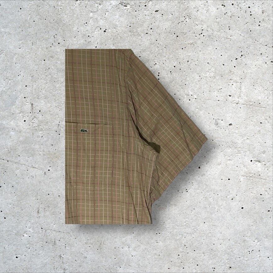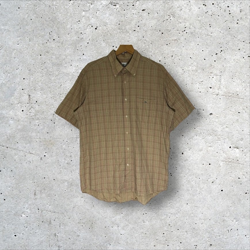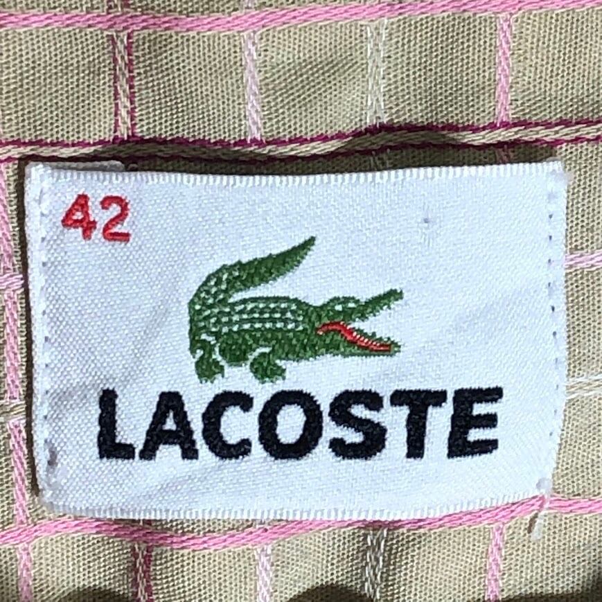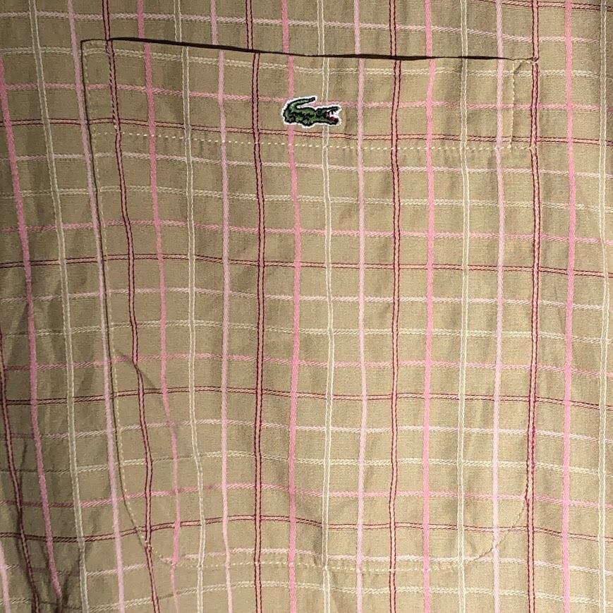 LACOSTE ラコステ クロコダイル ワンポイント刺繍 半袖シャツ ボタンダウン チェック柄 42サイズ ベージュ