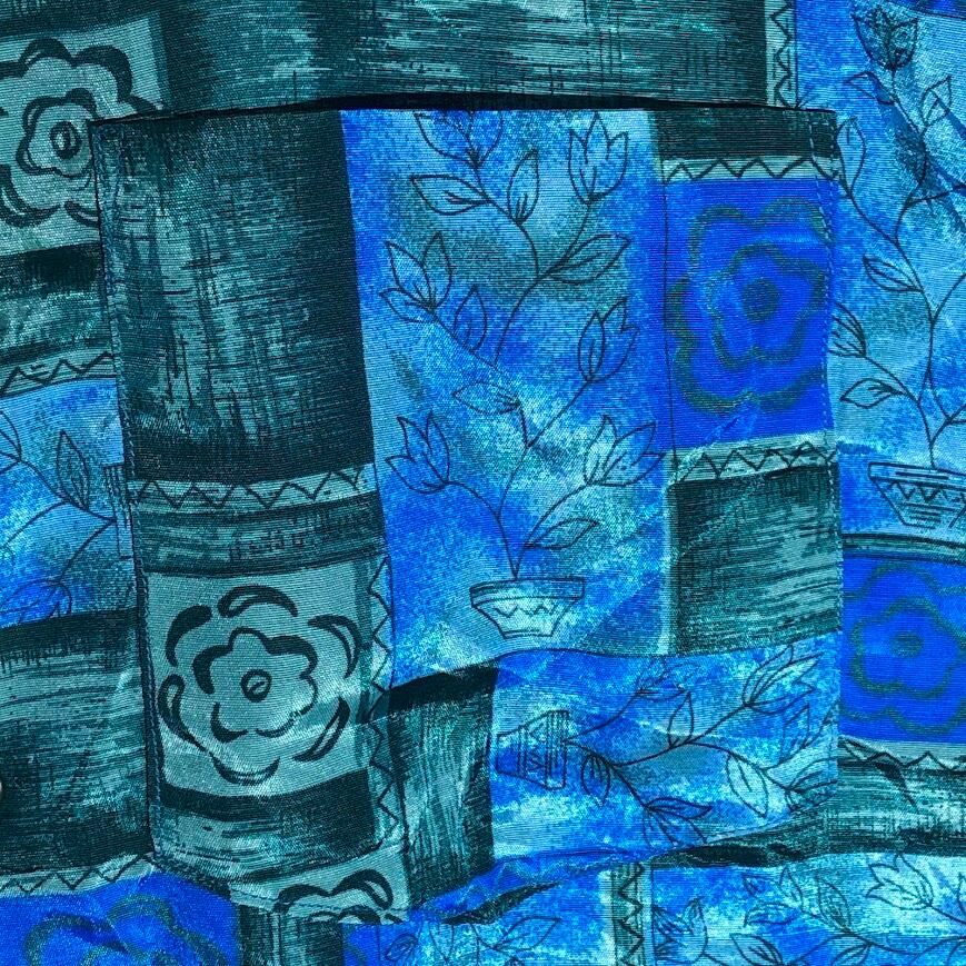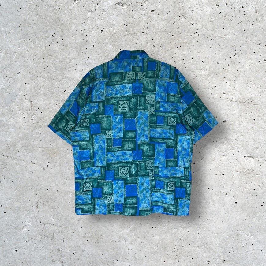 THAI SILK アロハシャツ ハワイアン 総柄 US古着 半袖 シャツ ボタンダウン オーバーサイズ ビッグシルエット THAILAND製 XLサイズ ブルー グリーン