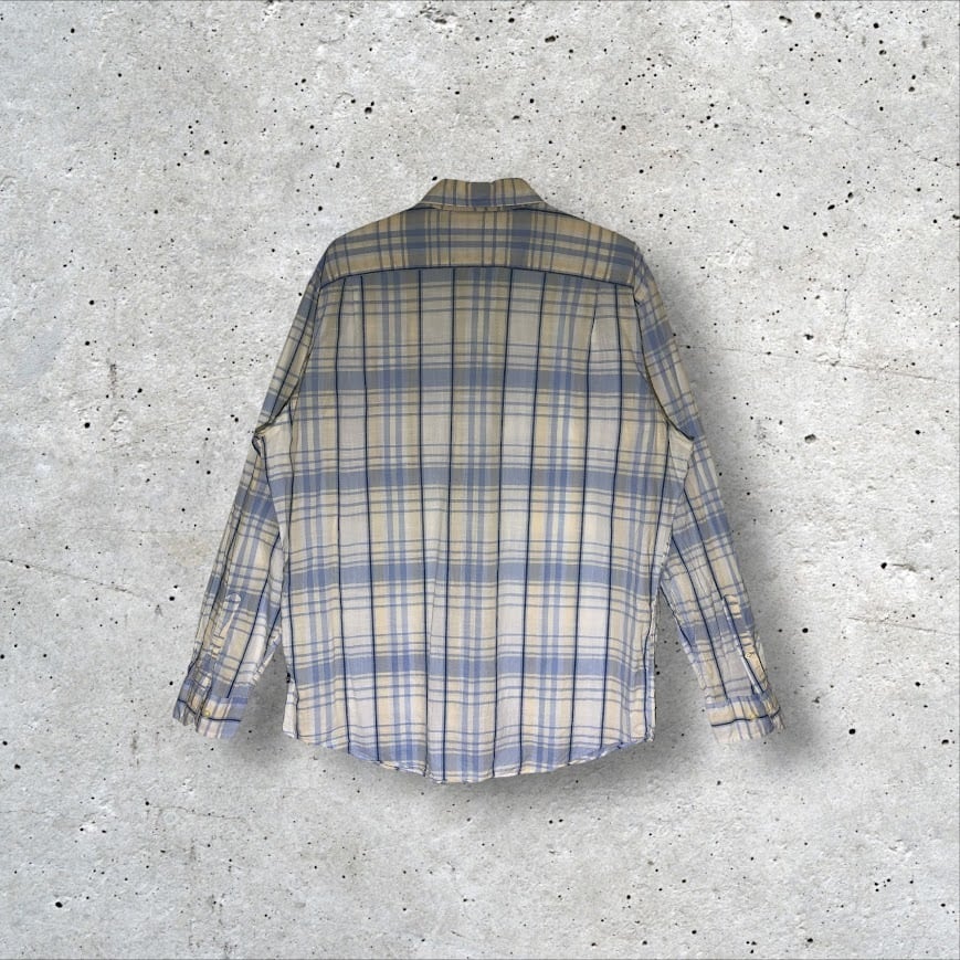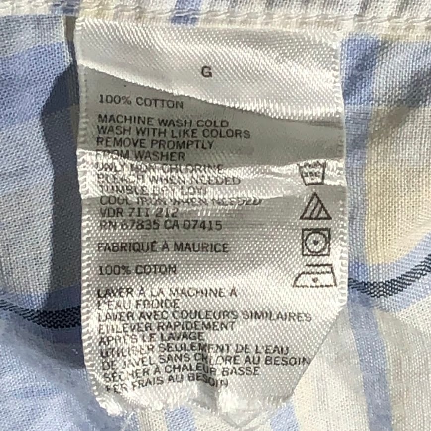NAUTICA ノーティカ 長袖 シャツ チェック柄 ボタンダウン ワンポイントロゴ刺繍 MAURITIUS製 Lサイズ ライトブルー ホワイト ブルー