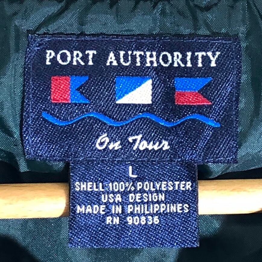 Port Authority ナイロンプルオーバー ナイロンジャケット プルオーバー Vネック リブ袖 企業ロゴ刺繍 フィリピン製 Lサイズ ダークグリーン