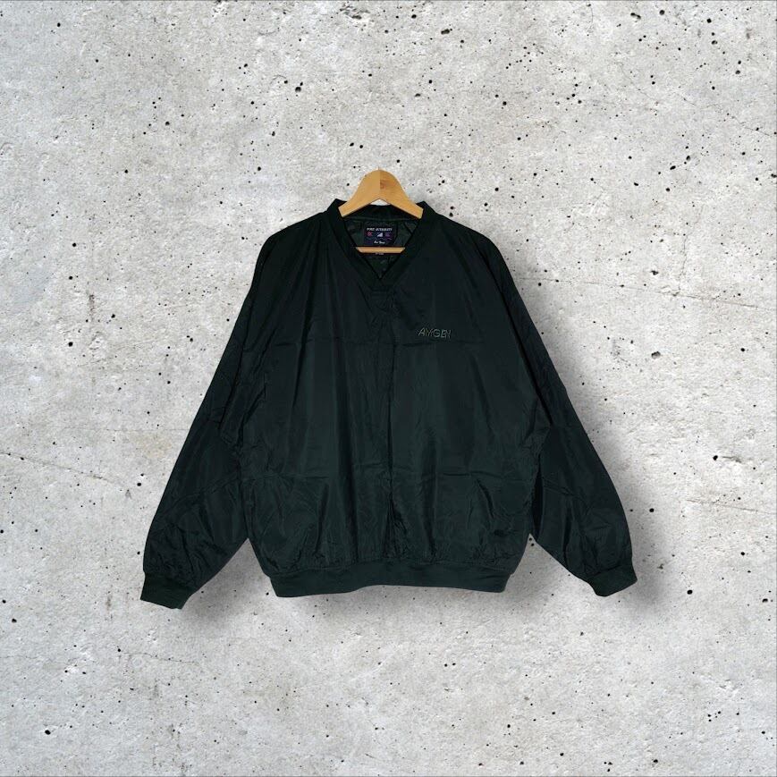 商品名:Port Authority ナイロンプルオーバー ナイロンジャケット プルオーバー Vネック リブ袖 企業ロゴ刺繍 フィリピン製 Lサイズ ダークグリーン