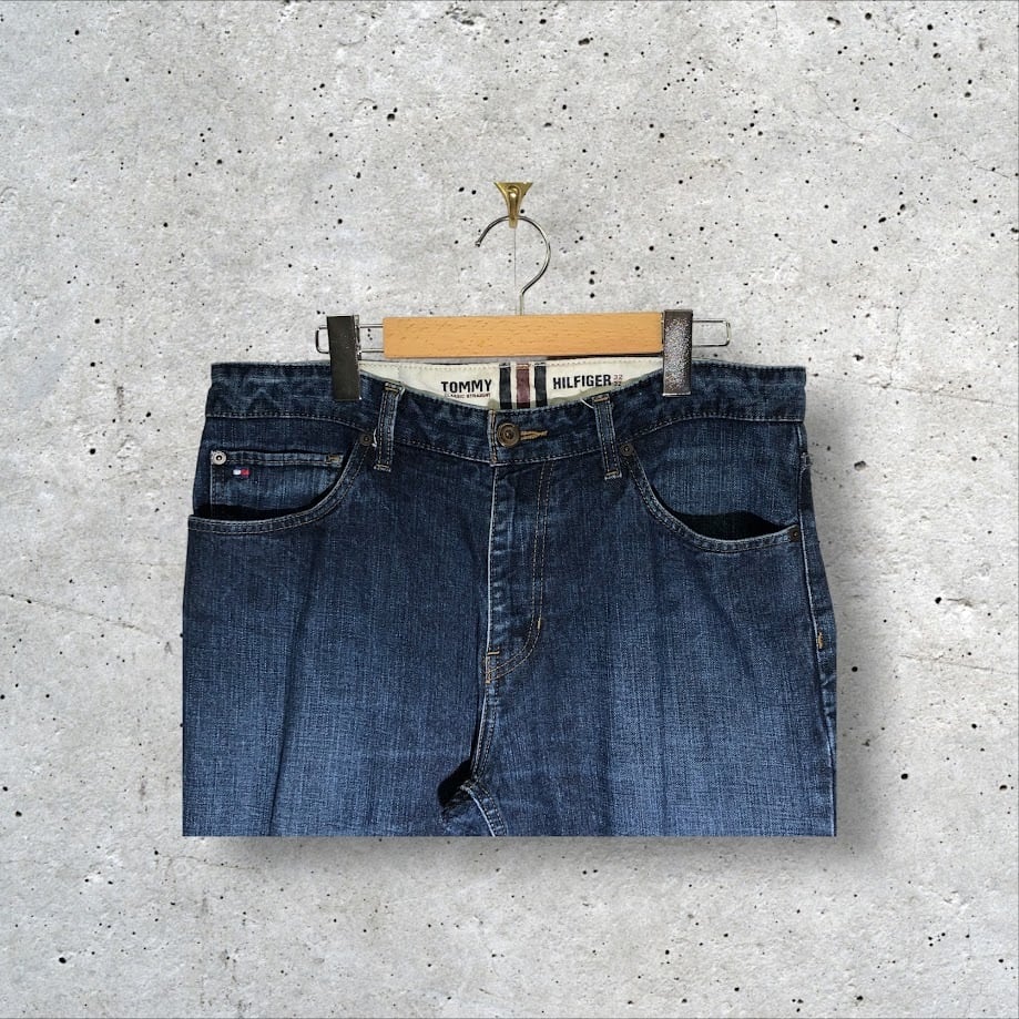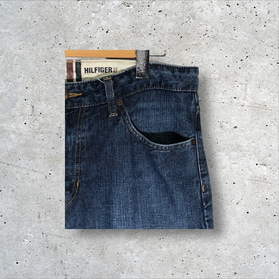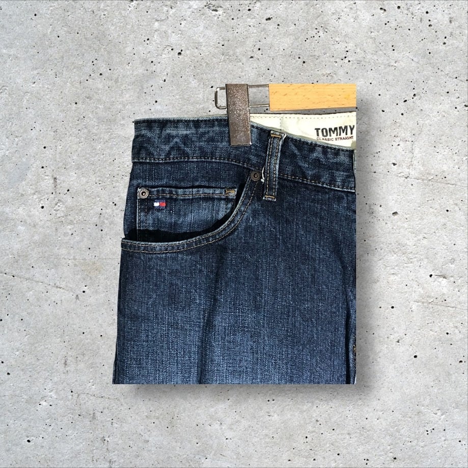 TOMMY HILFIGER CLASSIC STRAIGHT トミーヒルフィガー ストレート デニム ジーンズ 裏ポケットチェック柄 ジーパン Mexico製 32/32サイズ インディゴブルー