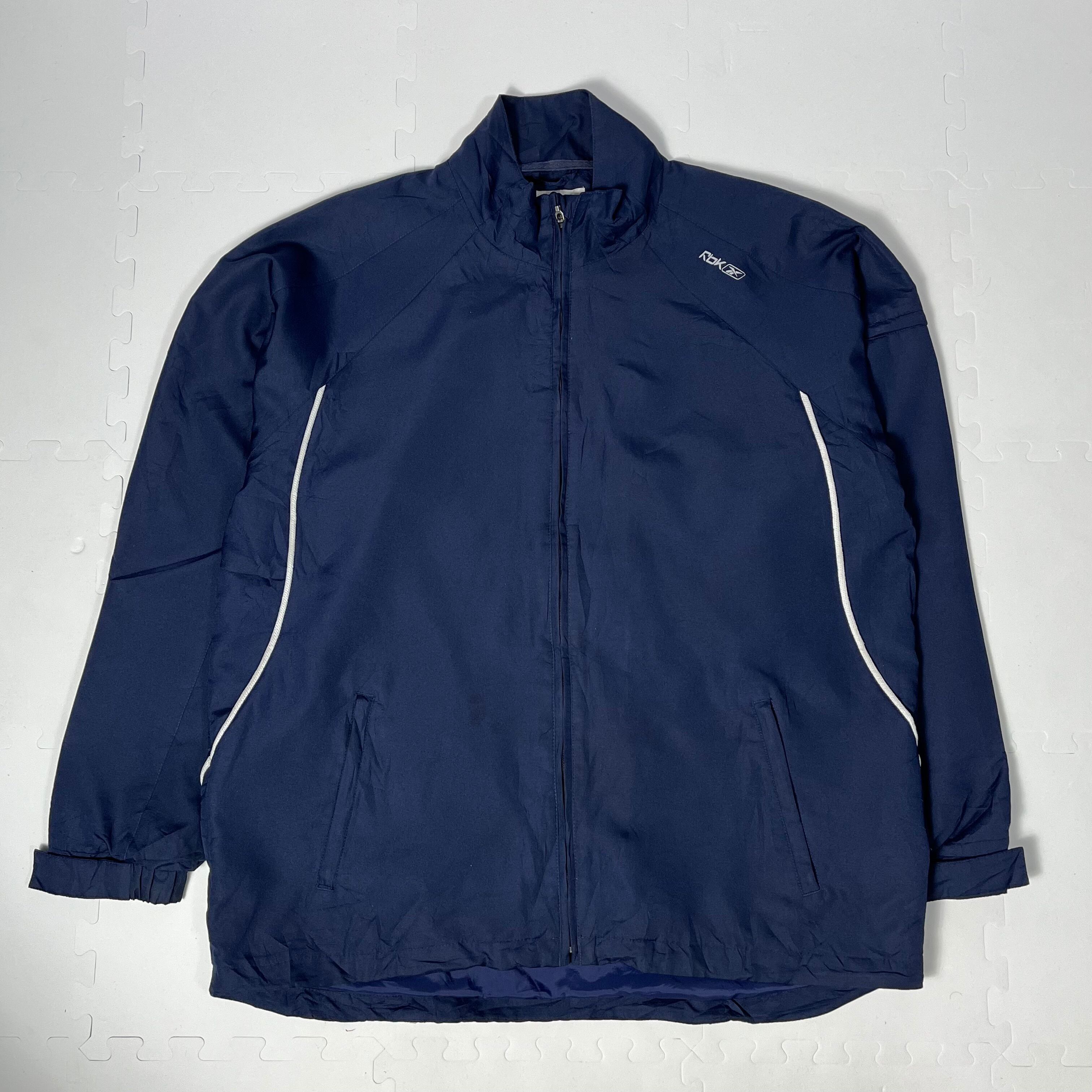 【商品名】Reebok リーボック ナイロンジャケット ジップ破れ有 バングラデシュ製 メンズXL ネイビー