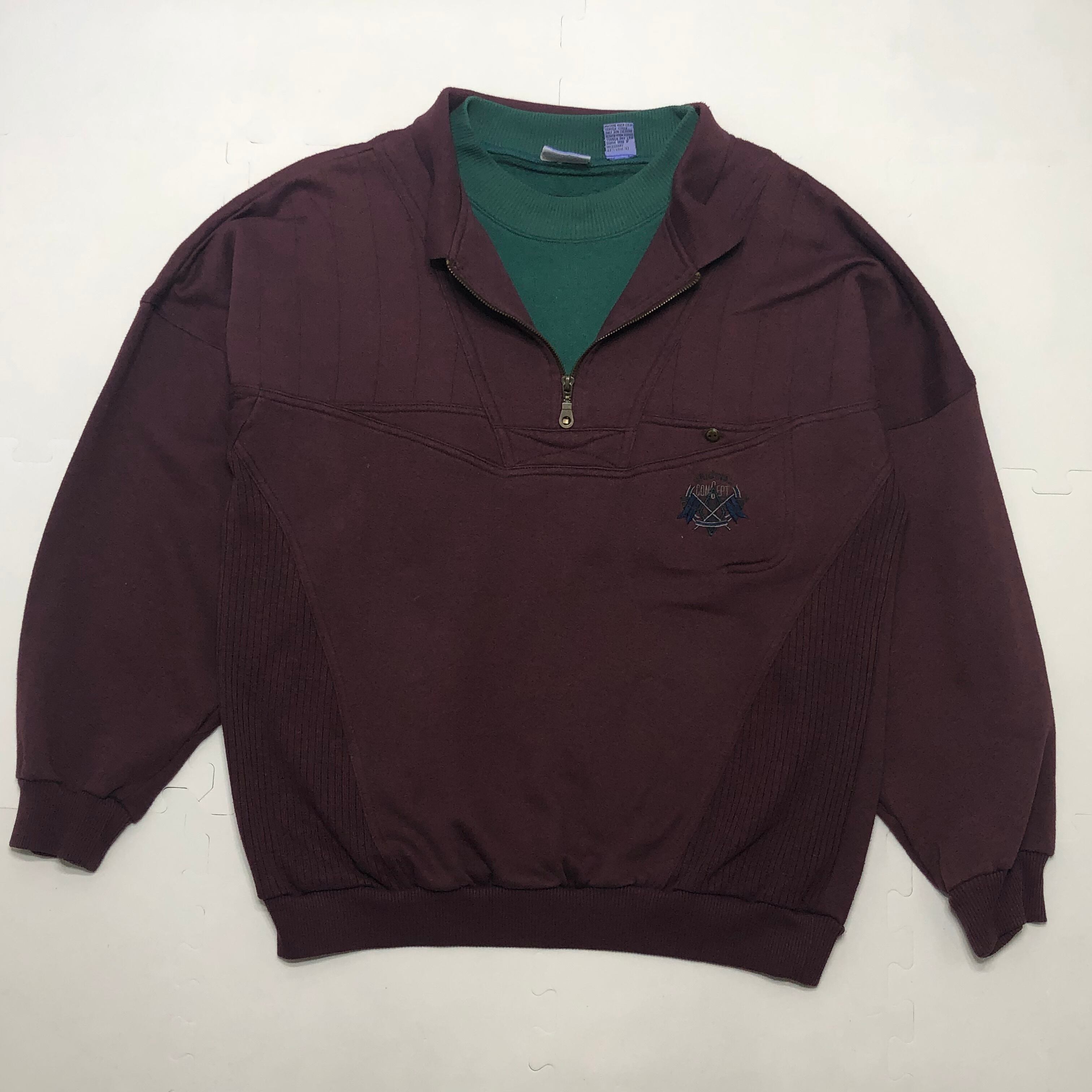 【商品名】TODAYS NEWS ハーフジップ スウェット 中国製 メンズM ワインレッド/グリーン