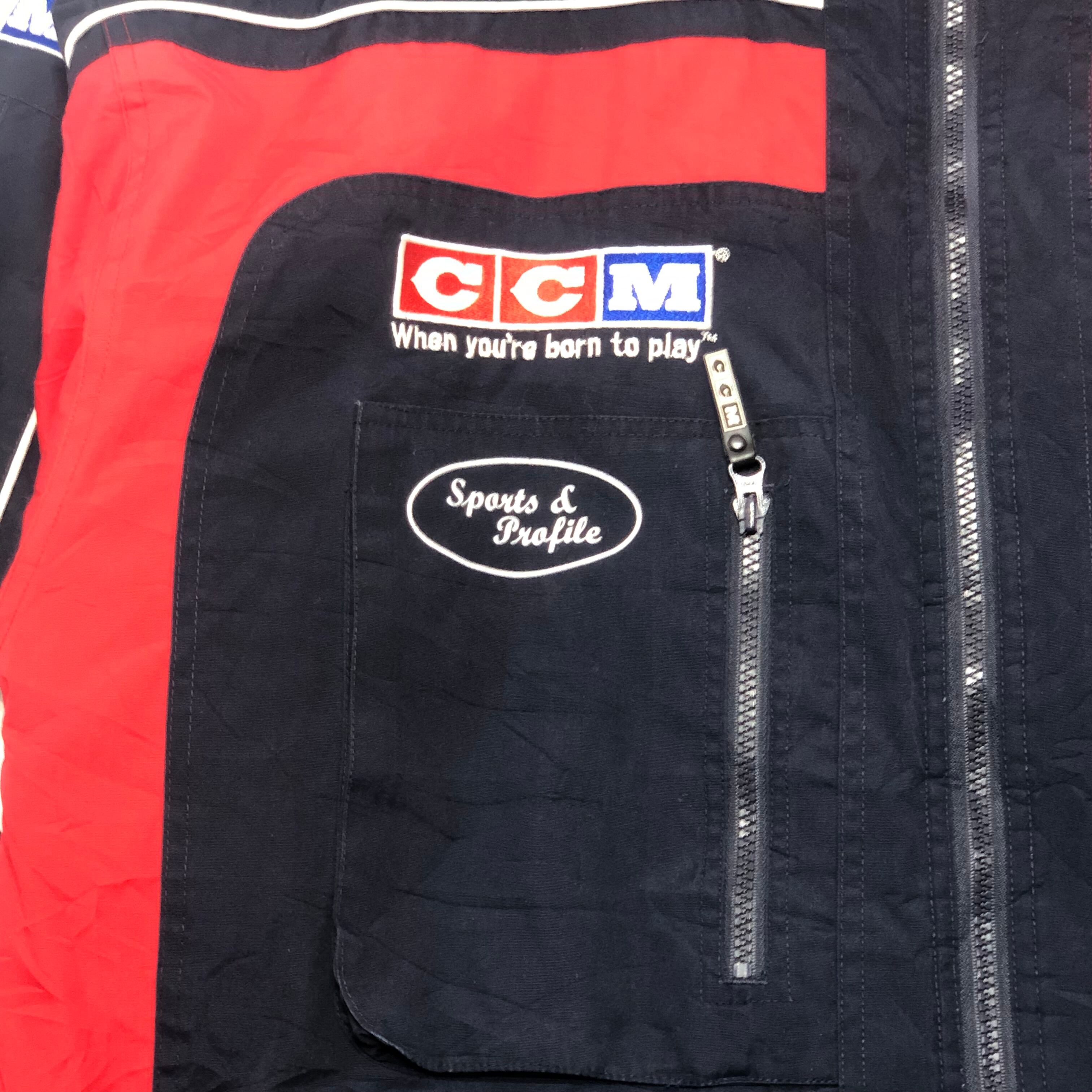 CCM NHL シーシーエム ポリジャケット ナイロンジャケット キルティングライナー 中綿 刺繍 vintage 90年代 メンズXL ブラック | OASISCLOTHING 海外古着屋【公式】通販サイト